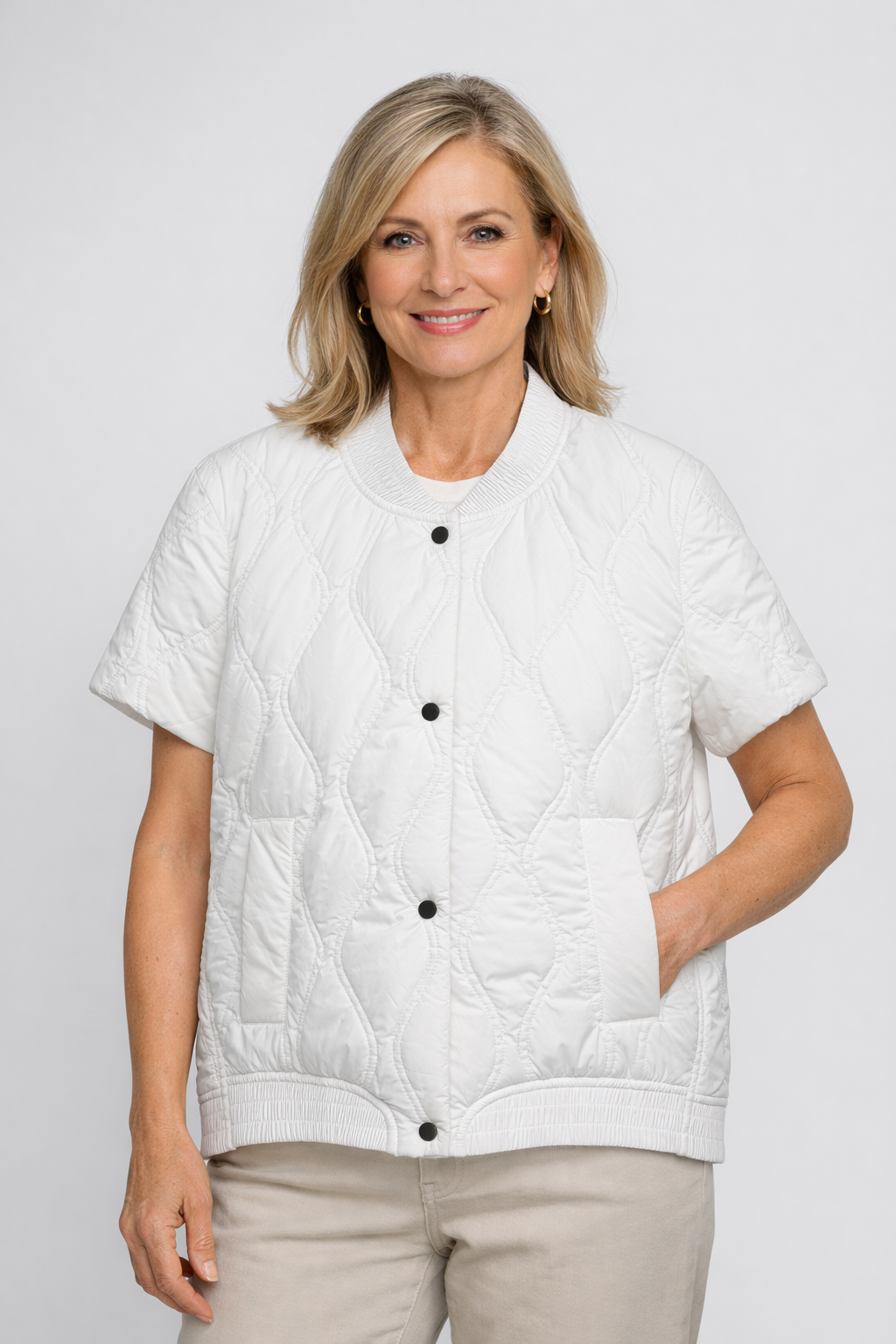 Elegantní bílá vesta zaujme na první pohled svou lehkostí, čistým designem a precizním zpracováním. Díky promyšlenému střihu s lehce delším zadním dílem krásně prodlužuje siluetu a působí velmi sofistikovaně.