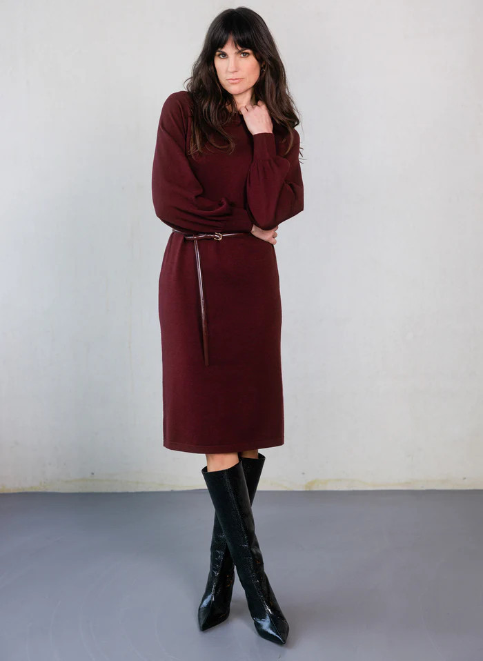 Pohodlné pletené šaty se stylovými detaily. Tyto šaty s balónkovými rukávy a odnímatelnou mašlí, která decentně zvýrazňuje pas. Měkký úplet je činí ideálními na podzim a zimu. Délka šatů 110 cm.