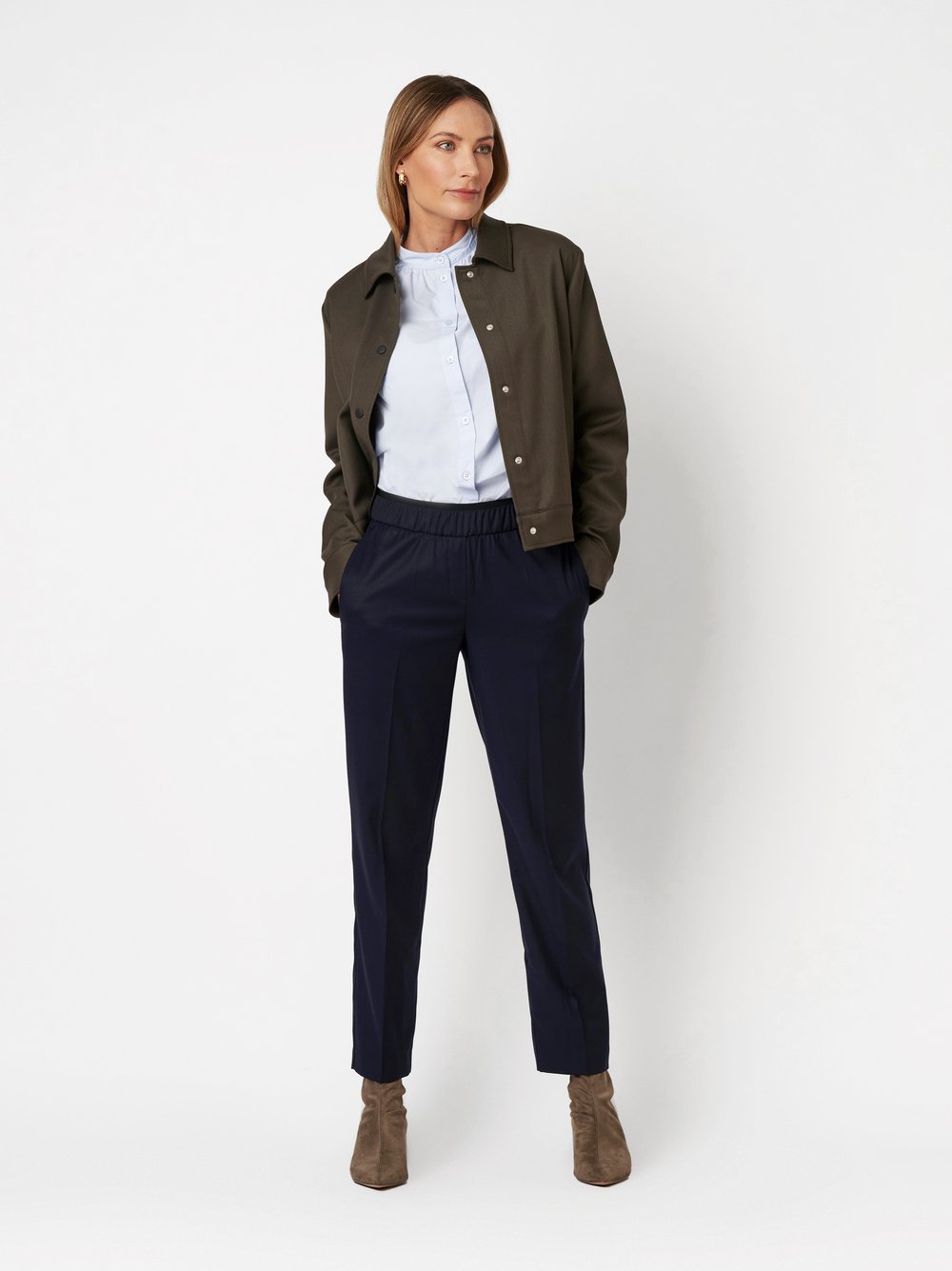 kalhoty "Sue" od TONI mistrně kombinují pohodlí s elegancí. Splývavý, hladký gabardén dodává vzhledu strukturu a lehkost, zatímco elastický pas s jemným nařasením dodává decentní designový prvek. Precizně umístěné záhyby zdůrazňují delší siluetu a dělají z těchto kalhot všestranný nezbytný kousek pro elegantní každodenní vzhled.