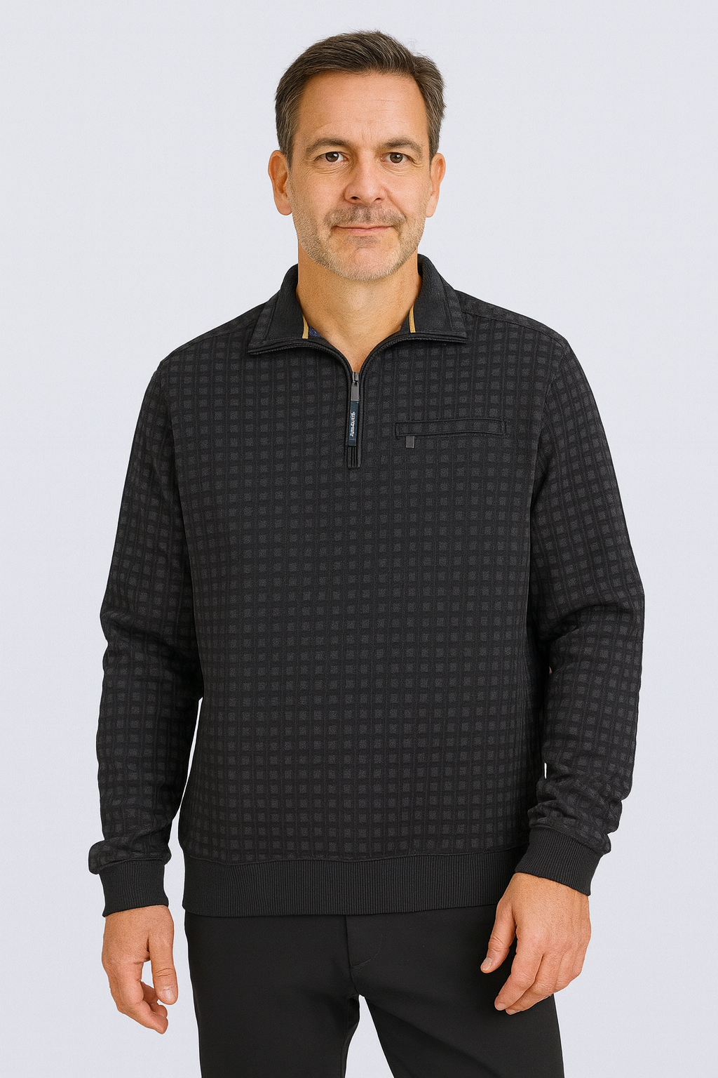 Pánský tenký úplet Monte Carlo s 3/4 zipem - tmavě šedý